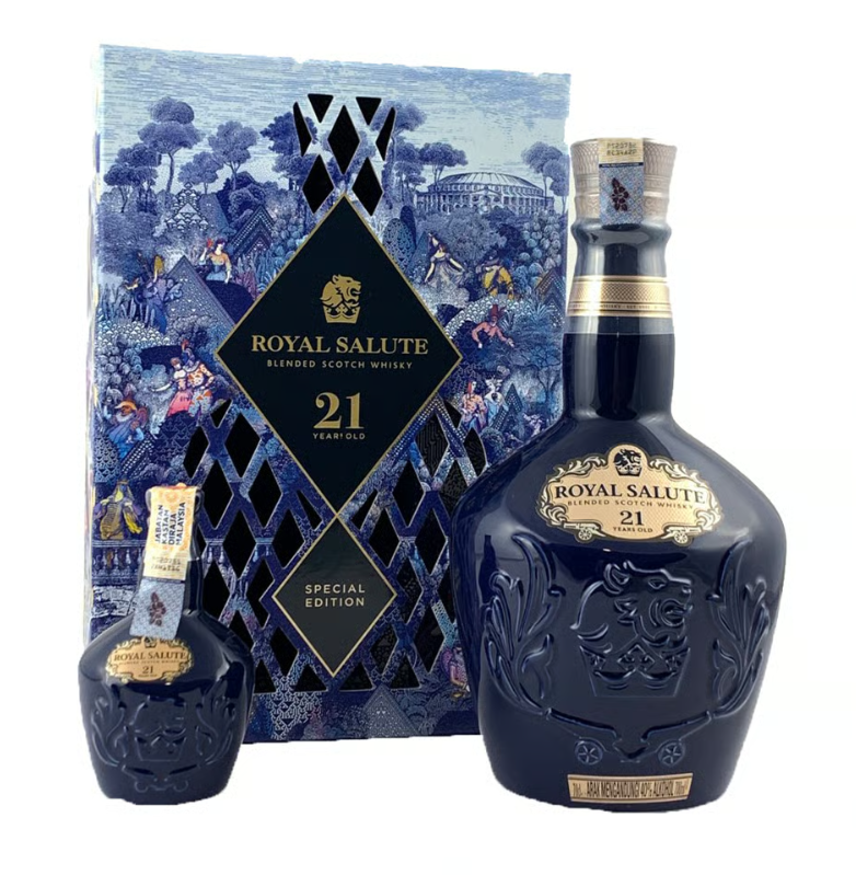 로얄 살루트(Royal Salute)는 스코틀랜드를 대표하는 초프리미엄 위스키 브랜드입니다. 1953년 영국 왕실의 대관식을 기념하기 위해 특별 제작된 이 위스키는 이름부터가 '왕실의 경례'라는 뜻을 담고 있습니다.3