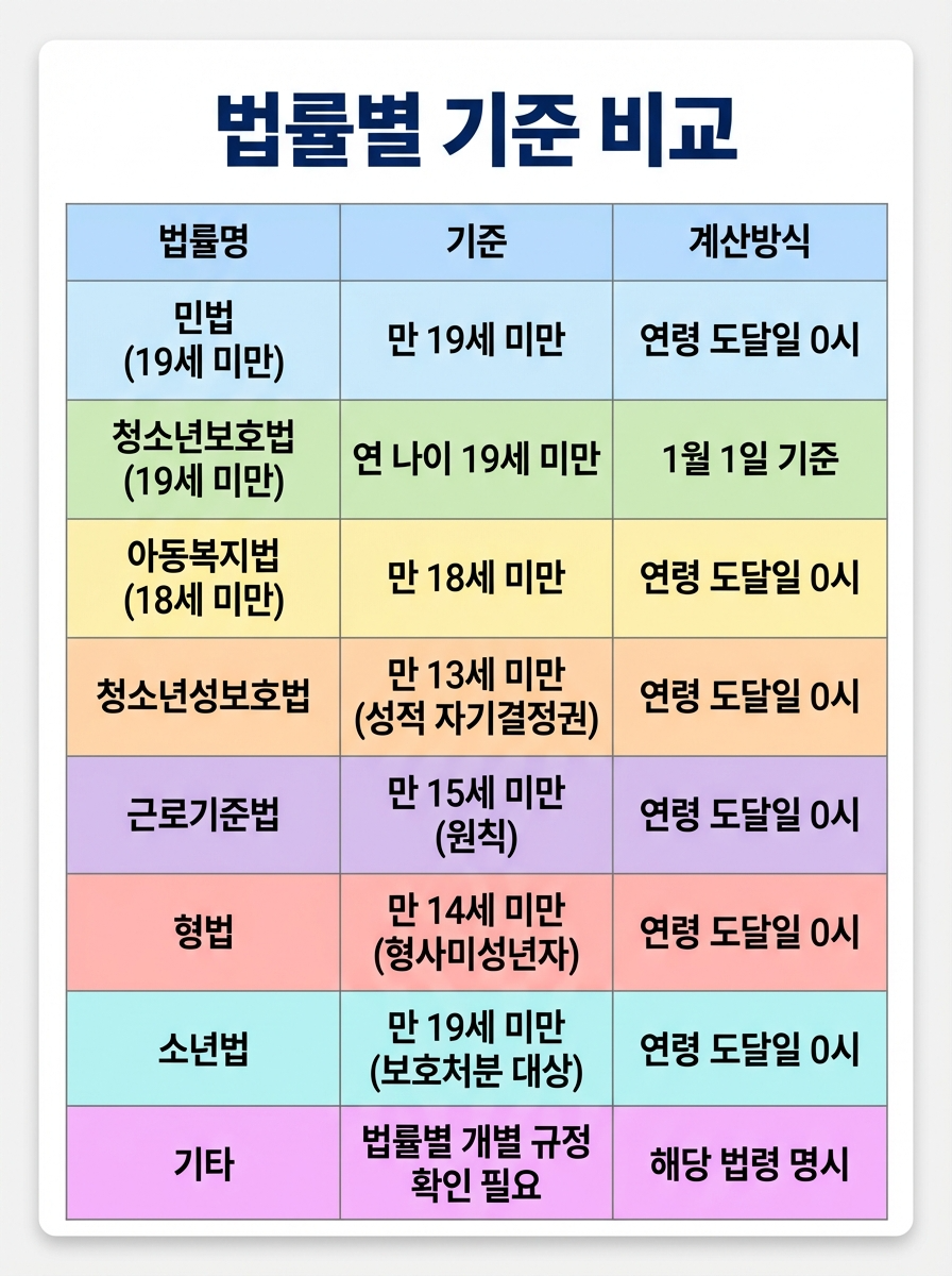3. 법률별 미성년자 나이 기준 차이점