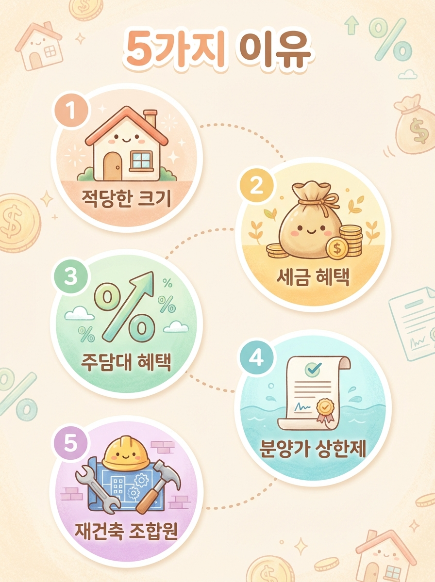 5. 재건축 조합원 자격: 재건축 아파트의 조합원 자격 유지에도 85㎡ 이하가 유리합니다. 국민평형으로 분류되어 다양한 혜택을 누릴 수 있습니다.